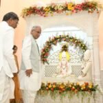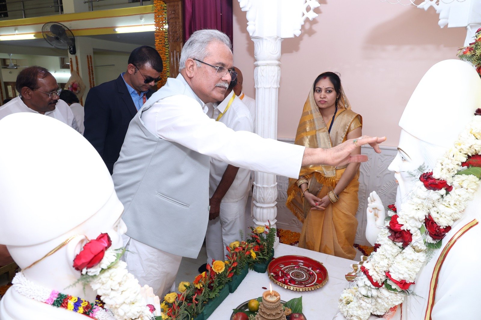 रायगढ़, 4 फरवरी 2023/ मुख्यमंत्री श्री भूपेश बघेल आज खरसिया के पंथश्री हुजूर मुकुन्दमणिनाम साहेब सत्संग भवन में स्थित सद्गुरु कबीर साहेब के मंदिर पहुंचे। यहां उन्होंने सद्गुरु कबीर साहेब का दर्शन कर विधि-विधान पूर्वक पूजा-अर्चना की।