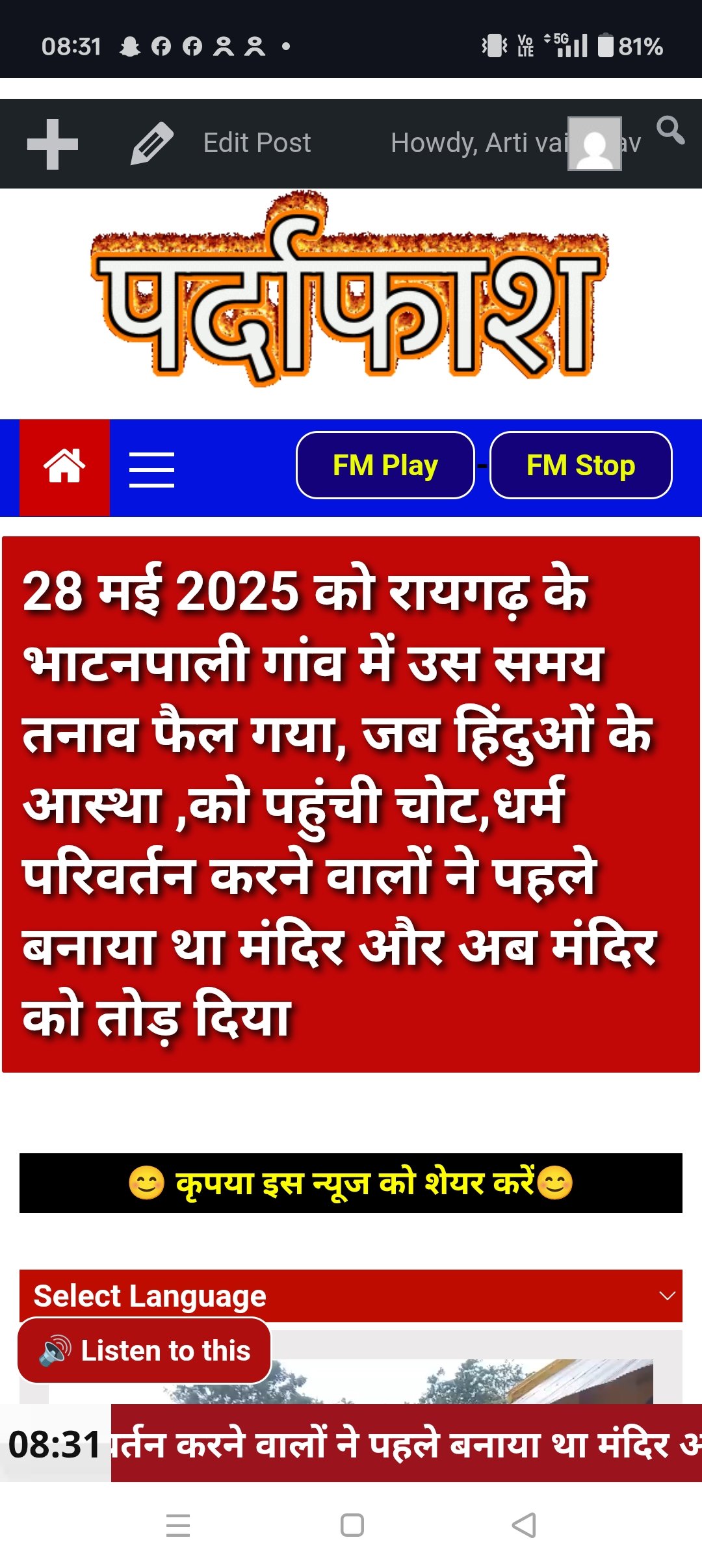 28 मई 2025 को रायगढ़ के भाटनपाली गांव में उस समय तनाव फैल गया, जब हिंदुओं के आस्था ,को पहुंची चोट,धर्म परिवर्तन करने वालों ने पहले बनाया था मंदिर और अब मंदिर को तोड़ दिया