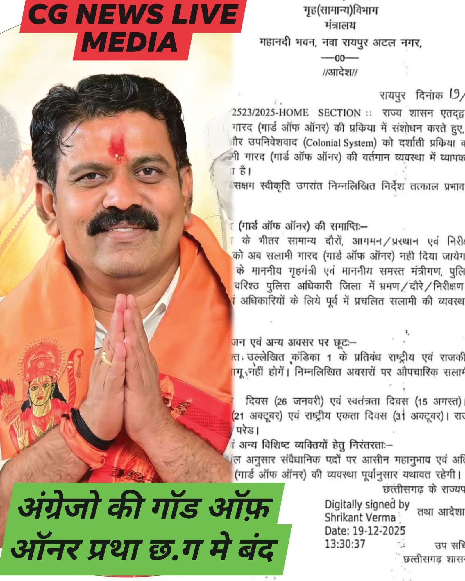 उपमुख्यमंत्री श्री विजय शर्मा की विशेष पहल से औपनिवेशिक परंपरा में ऐतिहासिक बदलाव