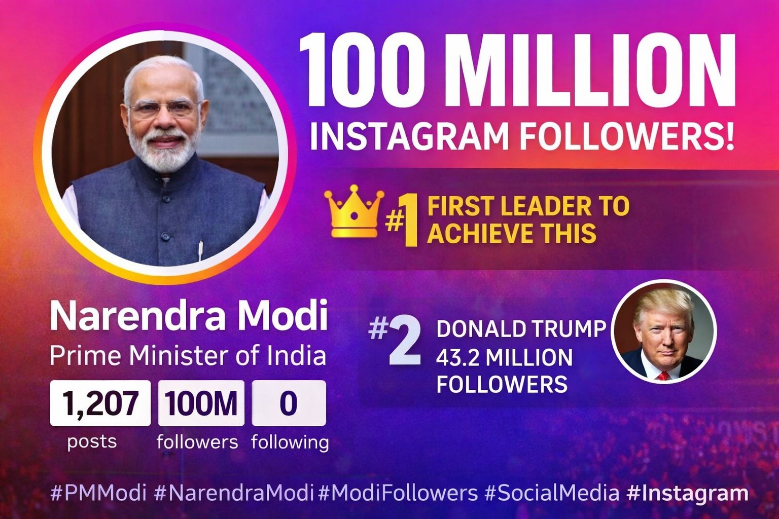 वे इंस्टाग्राम पर 100 मिलियन (10 करोड़) फॉलोअर्स पार करने वाले दुनिया के पहले नेता बन गए हैं।