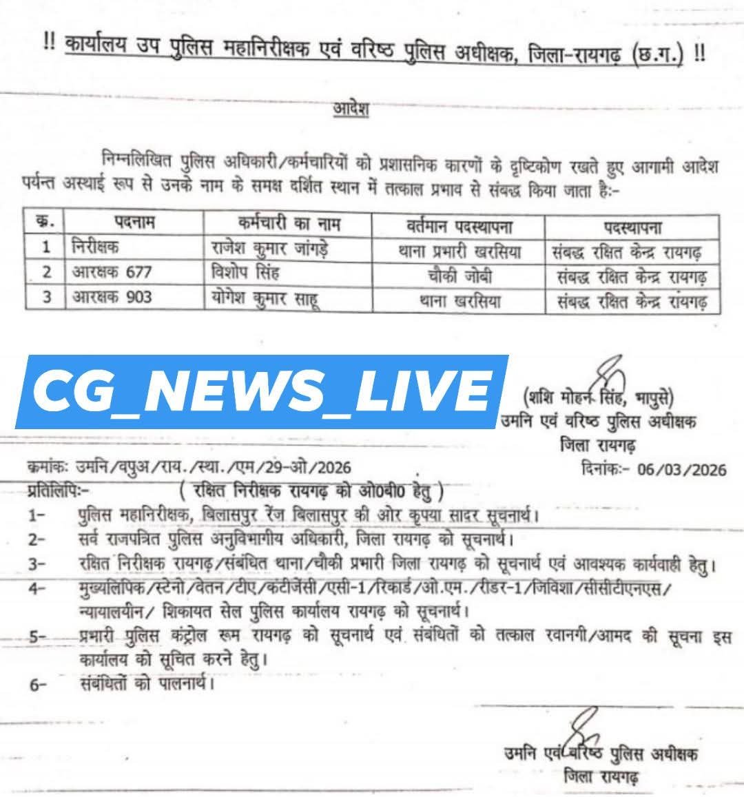 खबर का असर: परसकोल कस्टडी डेथ मामले में बड़ी कार्रवाई… हटाए गए खरसिया टीआई एवं 2 आरक्षक हुये लाईन अटैच..
