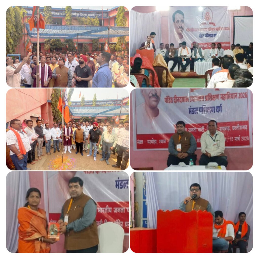 घरघोड़ा। दिनांक 14 मार्च 2026 को घरघोड़ा मंडल के अंतर्गत सरस्वती शिशु मंदिर में आयोजित भाजपा मंडल प्रशिक्षण महाभियान के प्रथम दिवस का सफल आयोजन किया गया। यह 24 घंटे का आवासीय प्रशिक्षण शिविर है, जिसमें कार्यकर्ताओं को संगठन की विचारधारा, कार्यपद्धति तथा विभिन्न समसामयिक विषयों पर विस्तृत प्रशिक्षण दिया जा रहा है।