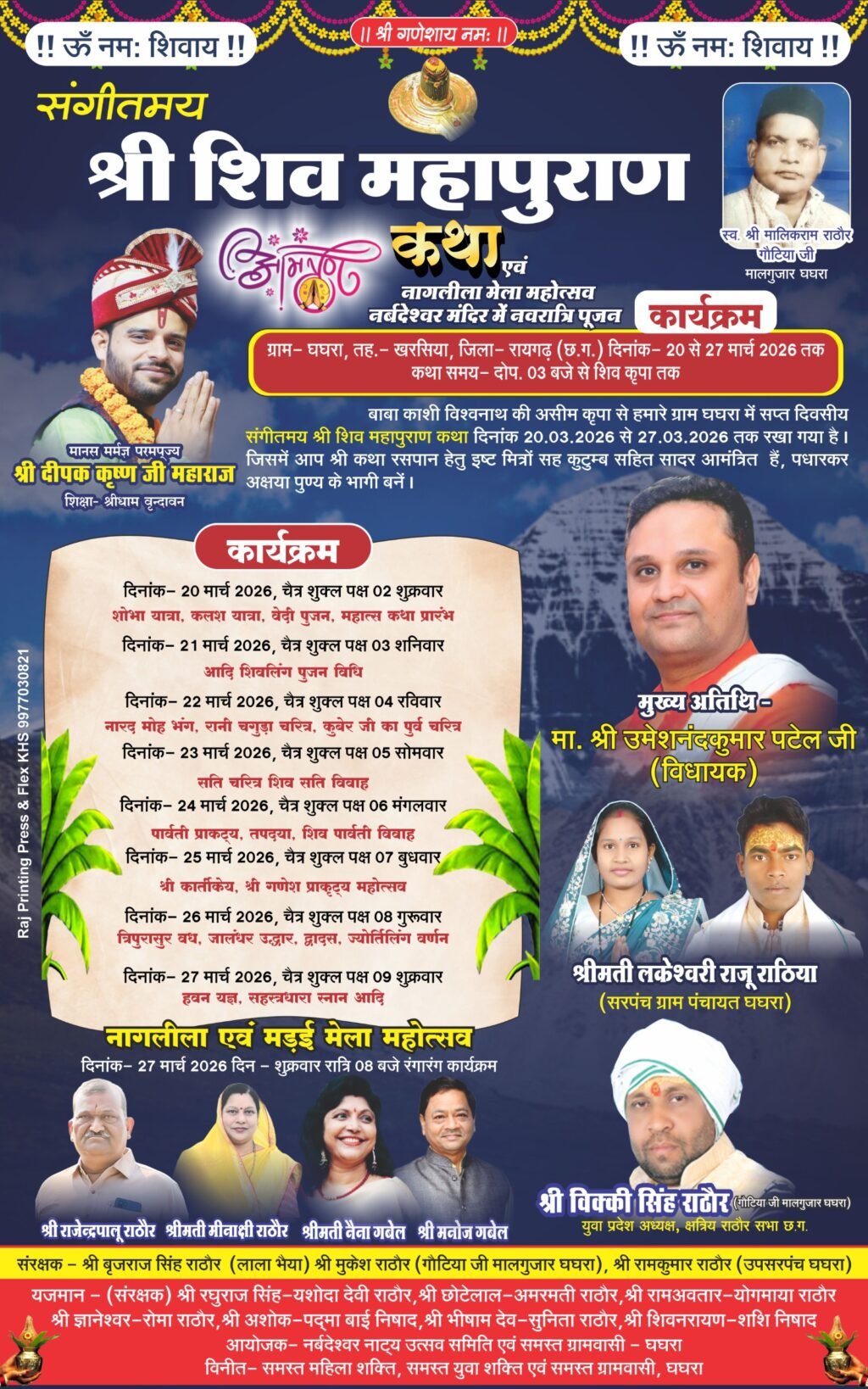 ग्राम घघरा में 20 से 27 मार्च तक होगा संगीतमय श्री शिव महापुराण कथा एवं नागलीला-भंडारे का भव्य आयोजन