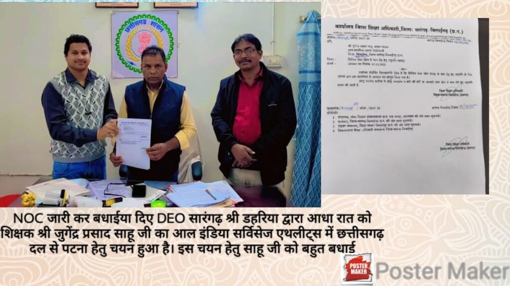 *सारंगढ़ DEO जे आर डहरिया जी नें आधी रात को खेल चयनित शिक्षक को NOC जारी कर दी बधाई -...