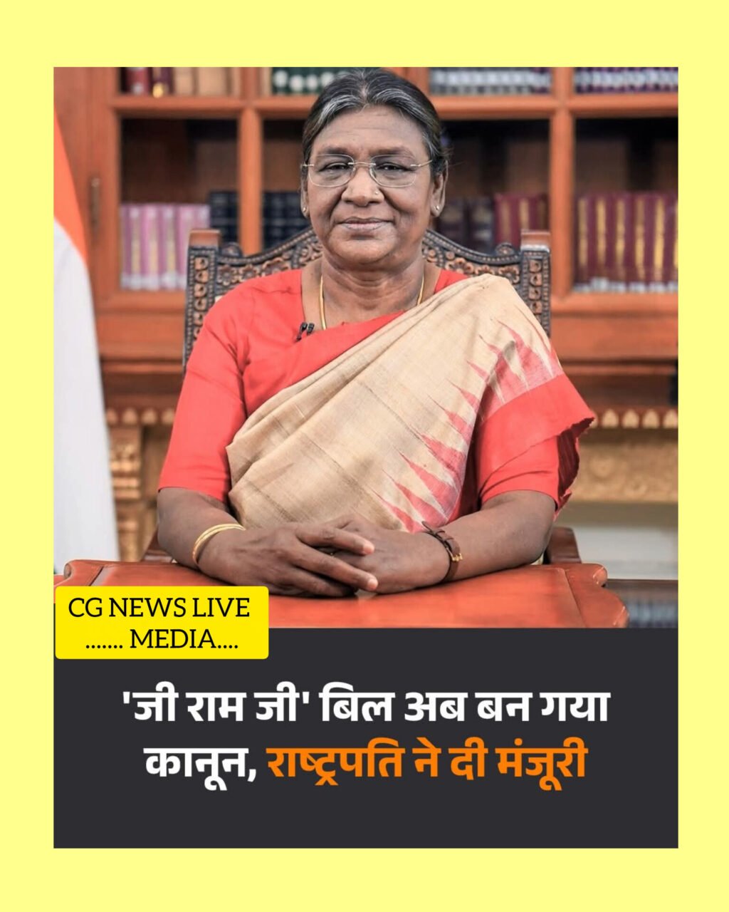 जी राम जी बिल को राष्ट्रपति द्रोपदी मुर्मू ने दी स्वीकृति…. पढ़े पूरी खबर अब मिलेगा ग्रामीणों को……. 2 days ago 📕CG NEWS LIVE MEDIA✍️बड़ी खबर ✍️📕 राष्ट्रपति द्रौपदी मुर्मू ने जी राम जी बिल को मंजूरी दे दी है। उनकी...